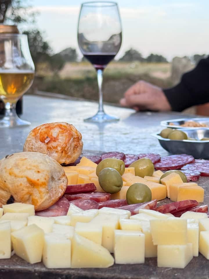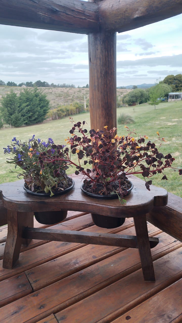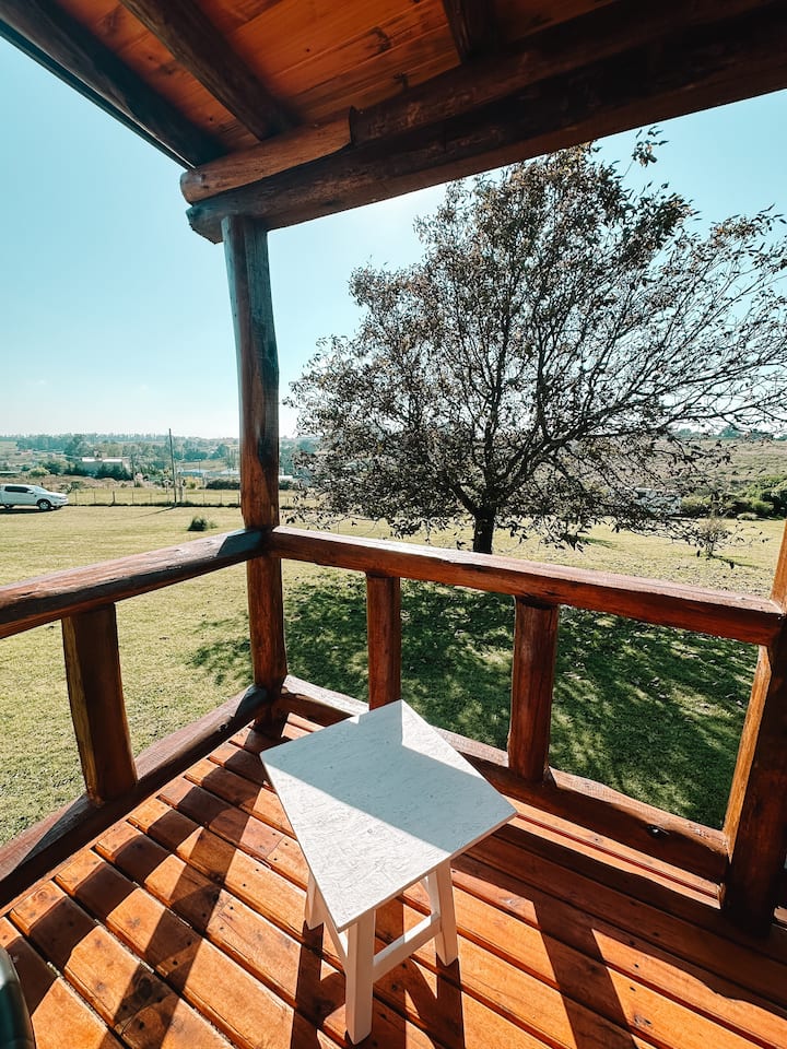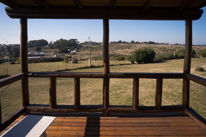 La cabaña es muy cómoda, cuenta con un deck en la entrada que te permite contemplar el paisaje con largas vistas de lugares emblemáticos de Tandil; El Centinela, El Parque, La Piedra Movediza y el Cristo de las Sierras. Es uno de los pocos lugares desde donde se pueden apreciar estas vistas. A eso se debe el antiguo nombre de esta zona, «Paraje el Mirador».