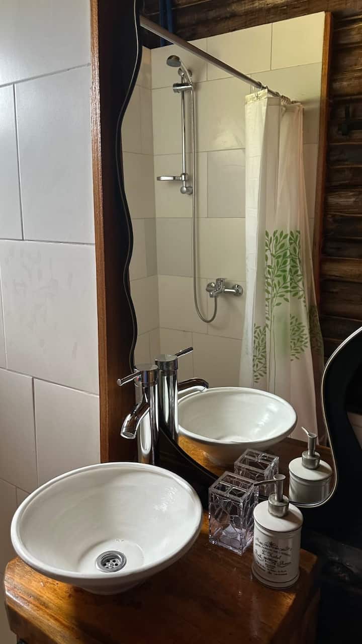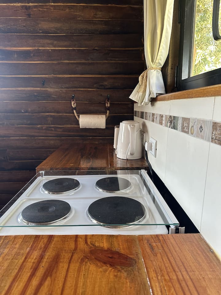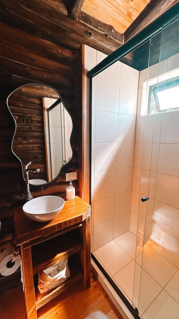 La cabaña cuenta con equipo de aire acondicionado y calefacción.