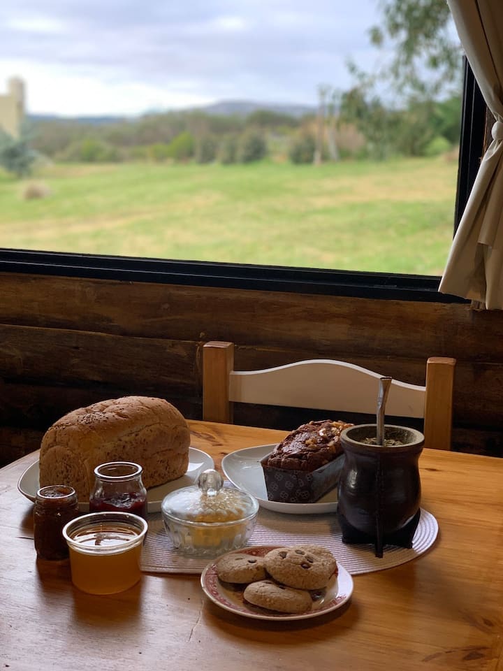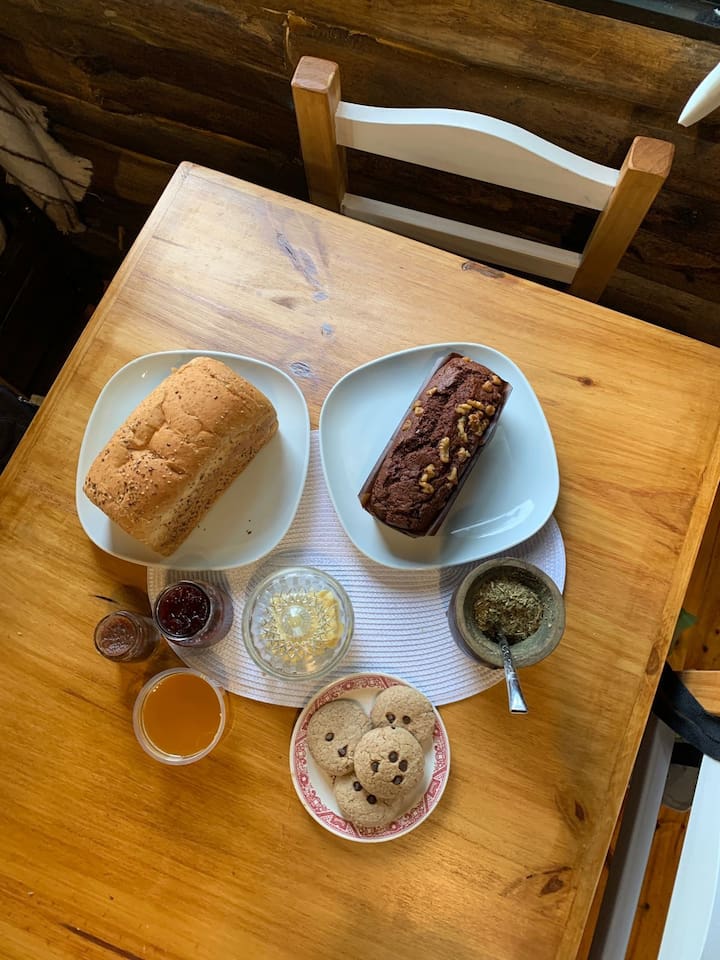 Te ofrecemos desayuno, brindándote pan lactal integral, manteca, dulce, leche, variedades de té y café en saquitos, para que los huéspedes lo consuman en el horario que deseen.